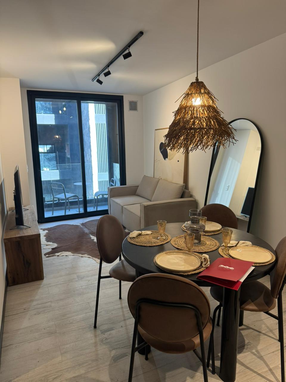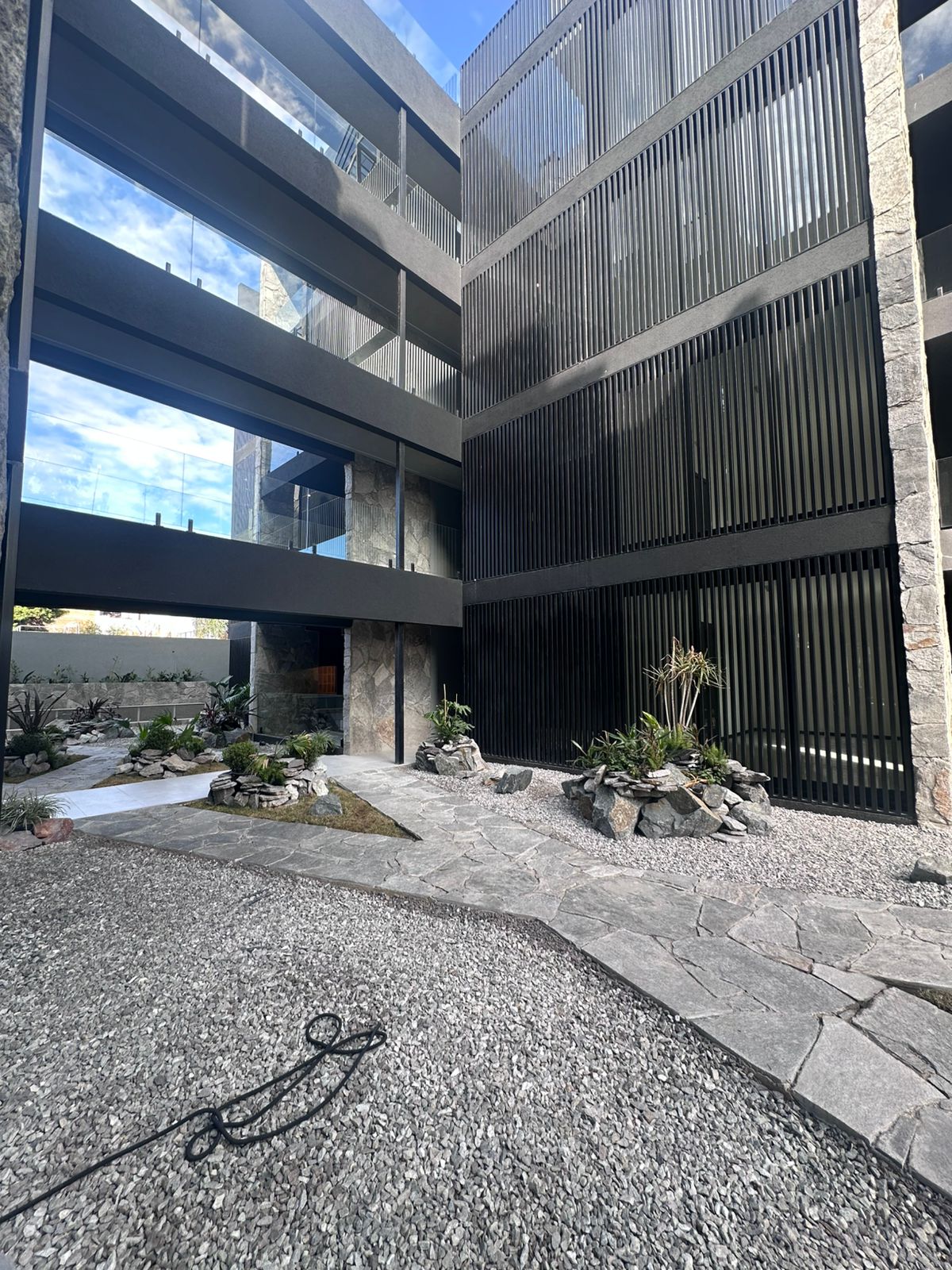 El departamento está ubicado en el edificio OKRA sobre calle Pedro Arballo de Bustamante 2746. Barrio Jardín.