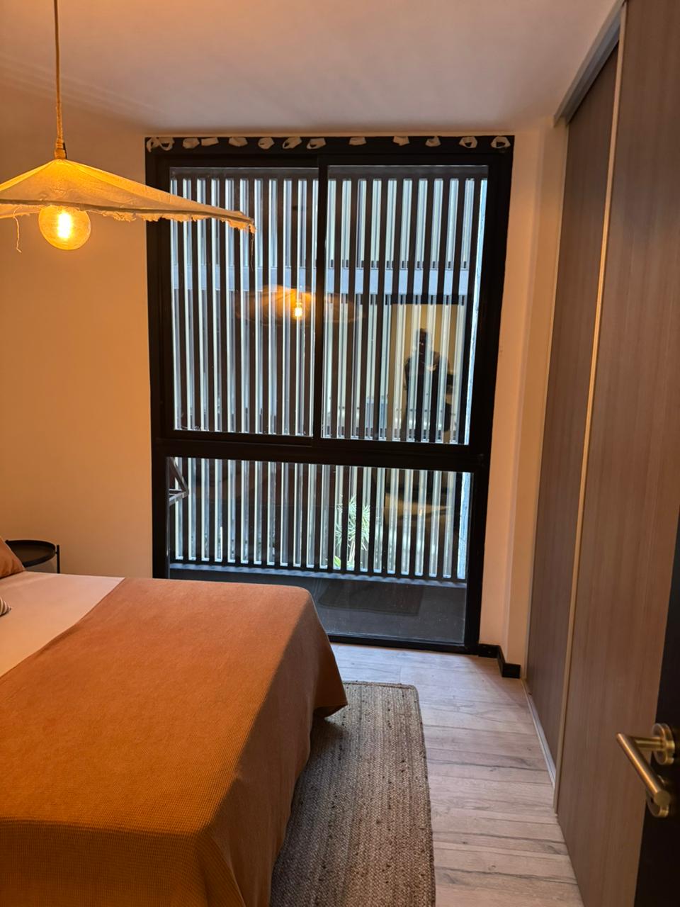 El departamento está ubicado en el edificio OKRA sobre calle Pedro Arballo de Bustamante 2746. Barrio Jardín.
